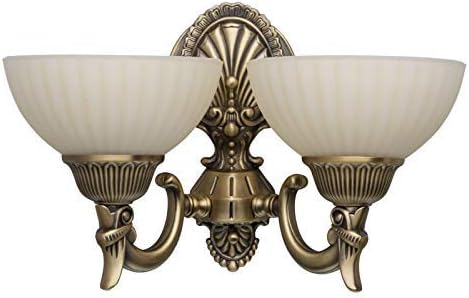 mw light applique murale classique a 2 lampes en metal couleur laiton et abat jours en verre brosse couleur de vanille pour salon 2x60w e27 amazon fr luminaires et eclairage