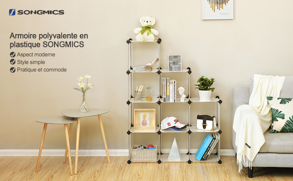 songmics armoire en plastique etagere meuble de rangement 9 cubes ouverts modulabe 93 x 123 x 31 cm semi transparent lpc115s achat vente armoire de chambre songmics 9 cubes etagere d