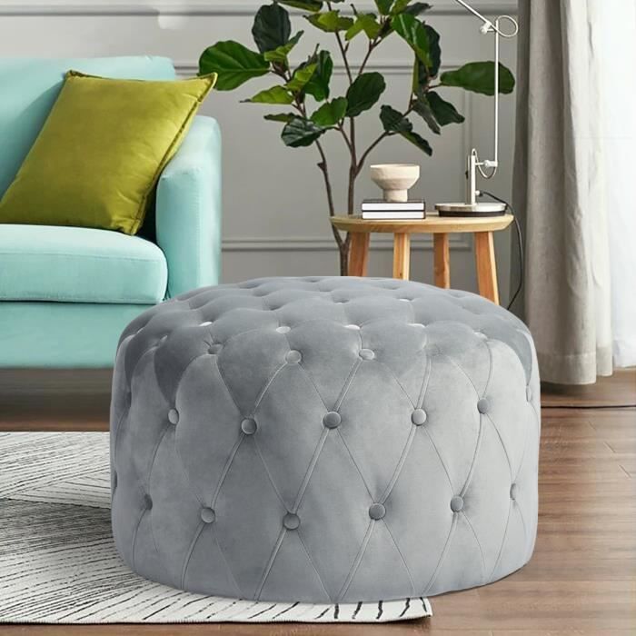 furnish1 miya tabouret canape 1 place chaise de visiteur tabouret pouf rond en velours gris style moderne 60 x 60 x h40cm achat vente pouf poire housse en tissu avec mousse cdiscount