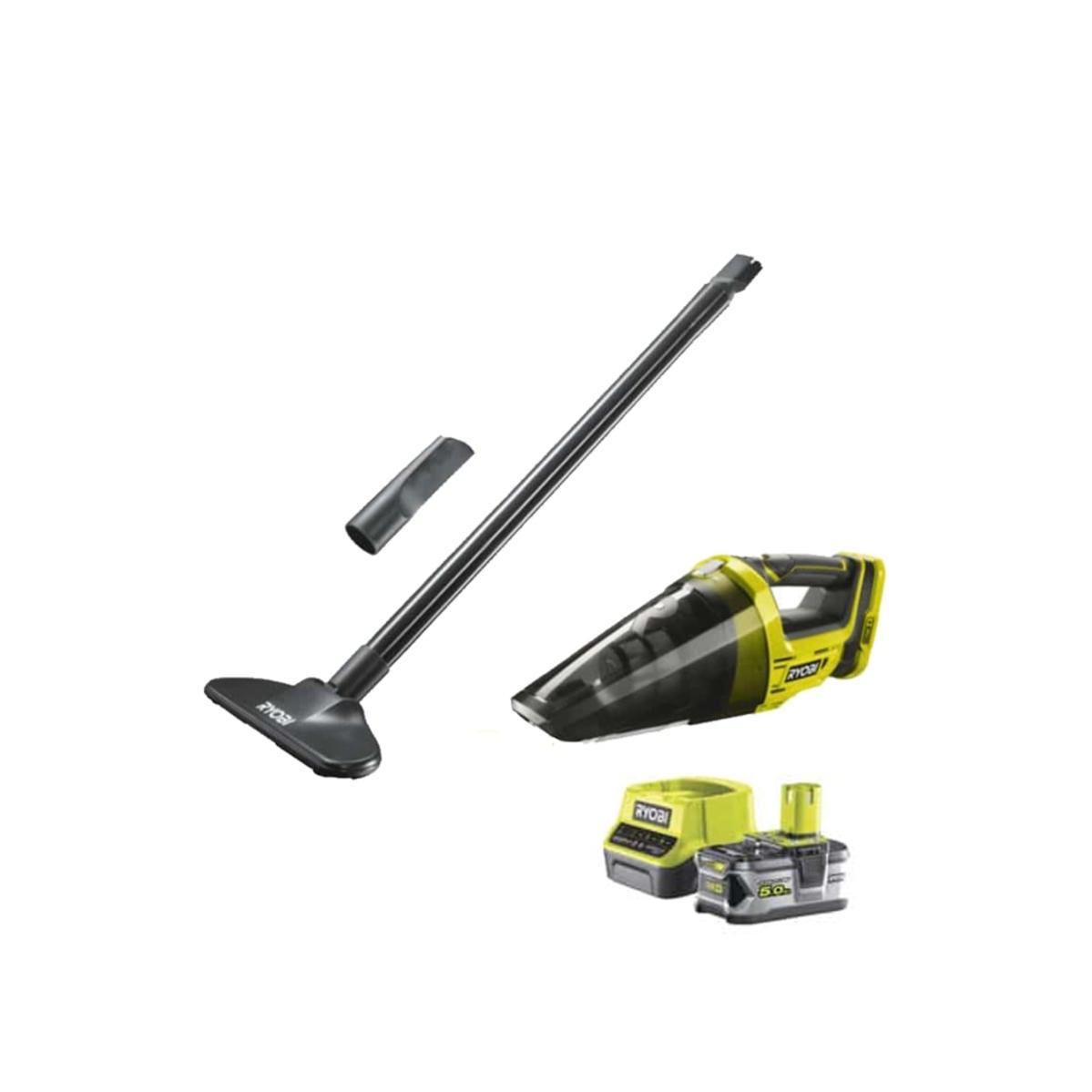 pack aspirateur a main ryobi 18v one plus r18hvf 0 1 batterie 5 0ah 1 chargeur rapide 2 0ah rc18120 150 leroy merlin
