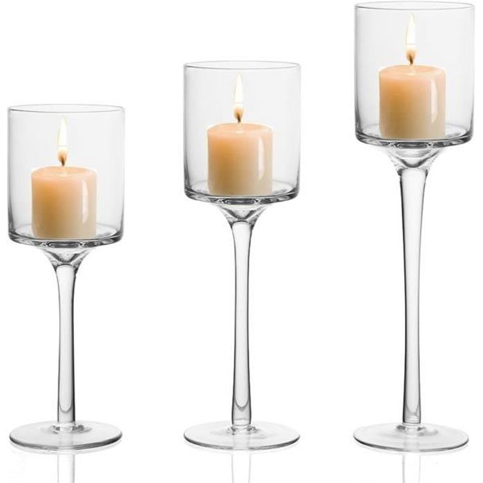bougeoir en verre lot de 3 26 cm 23 cm et 20 cm hauteur porte bougie pilier support en verre pour bougie chauffe plat achat vente bougeoir chandelier cdiscount