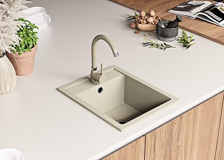 evier de cuisine en granit a encastrer riga 1 bac sans egouttoir beige pour les meubles a partir 40cm inclus siphon classique gain de place et trop plein de primagran amazon fr bricolage