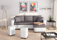 canape d angle reversible convertible avec coffre et poufs blanc gris sophie maison et loisirs e leclerc