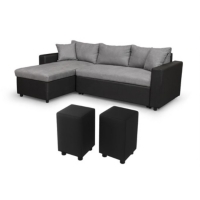 canape d angle reversible convertible avec coffre et poufs noir gris sophie maison et loisirs e leclerc