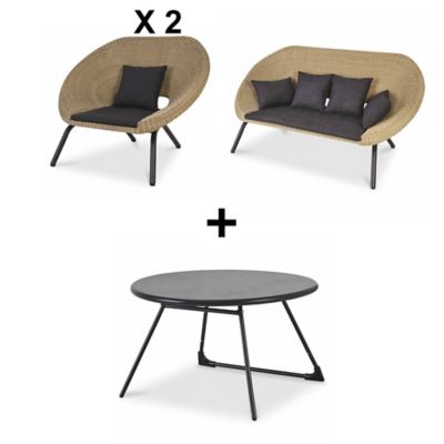 lot table basse de jardin nova 2 fauteuils de jardin loa 1 canape de jardin loa castorama