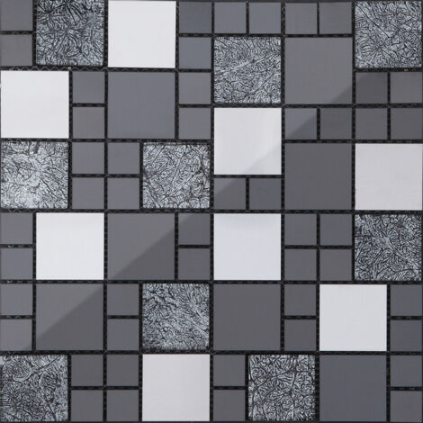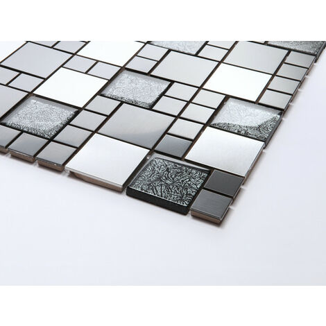 30cm x 30cm carrelage mosaique en verre et acier inoxydable noir argent mt0002