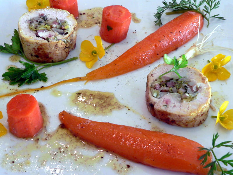 ballotine de poulet farcie aux carottes nouvelles