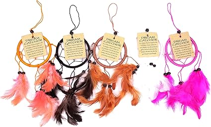 lot de 5 attrape reve capteur attrapeur reves dreamcatcher dream catcher cauchemar plumes orange noir marron blanc rose amazon fr cuisine maison