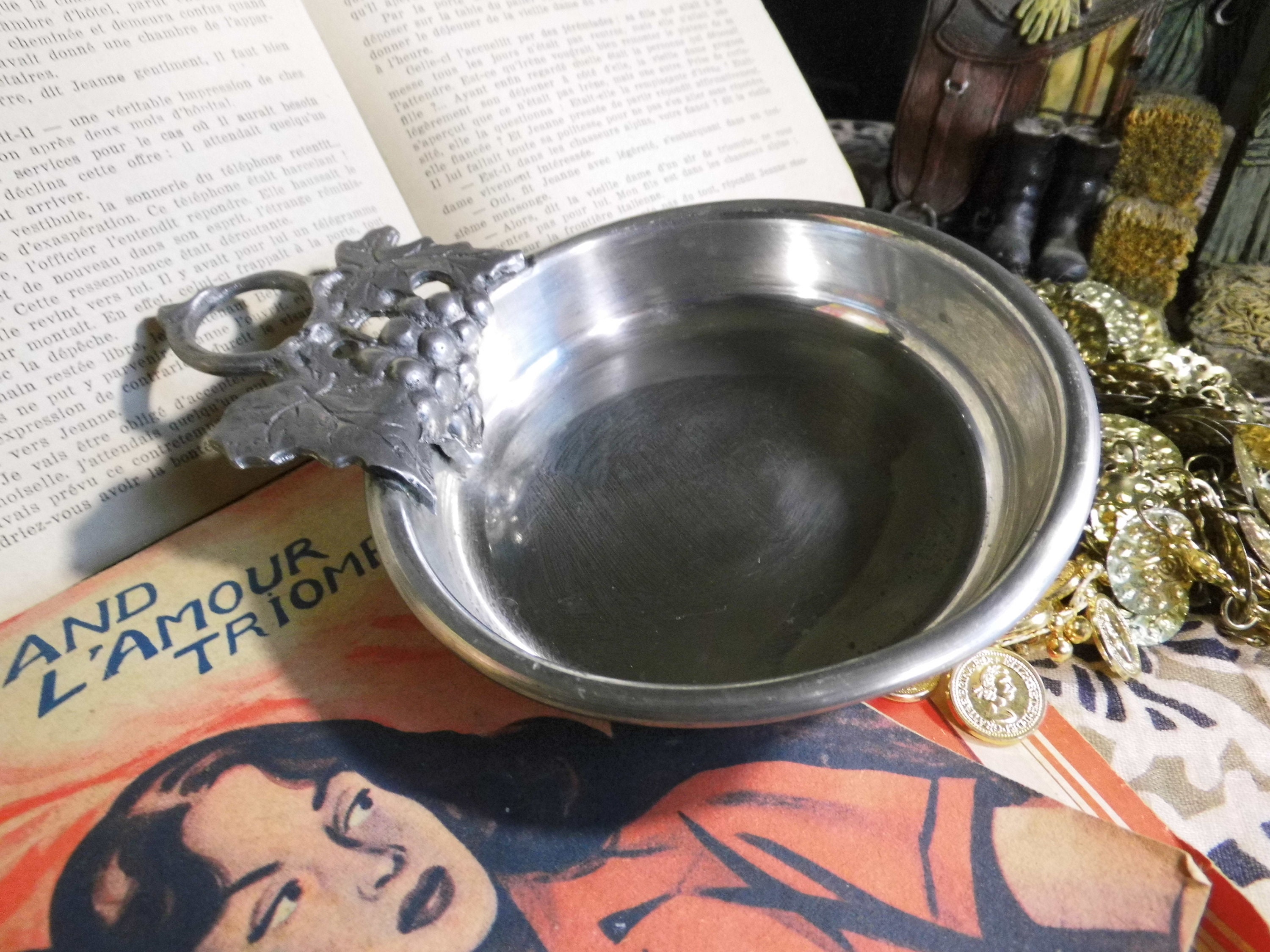 vintage french wine bottle coaster or tastevin silver plated with grape vine leaf decoration decorated tip dish tray sommelier gift
