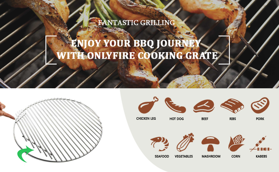 onlyfire stainless steel round grid hinged cooking grate replacement for large big green egg kamado joe classic char griller barbecue ceramic grill and smoker 18 1 2 inches amazon ca patio lawn garden
