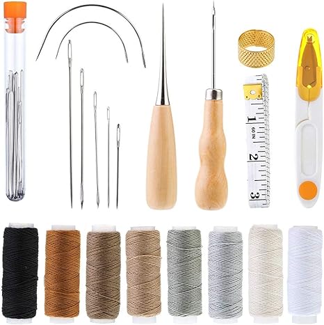 couture pour cuir outil cuir 29pcs alene de forage aiguilles a coudre cuir fil accessoires fils pour reparation outils a la main de cuir amazon fr cuisine maison
