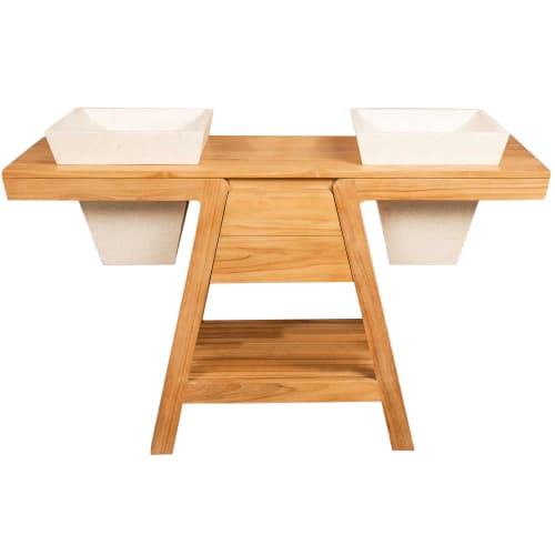 meuble salle de bain en teck et 2 vasques creme l140cm maisons du monde