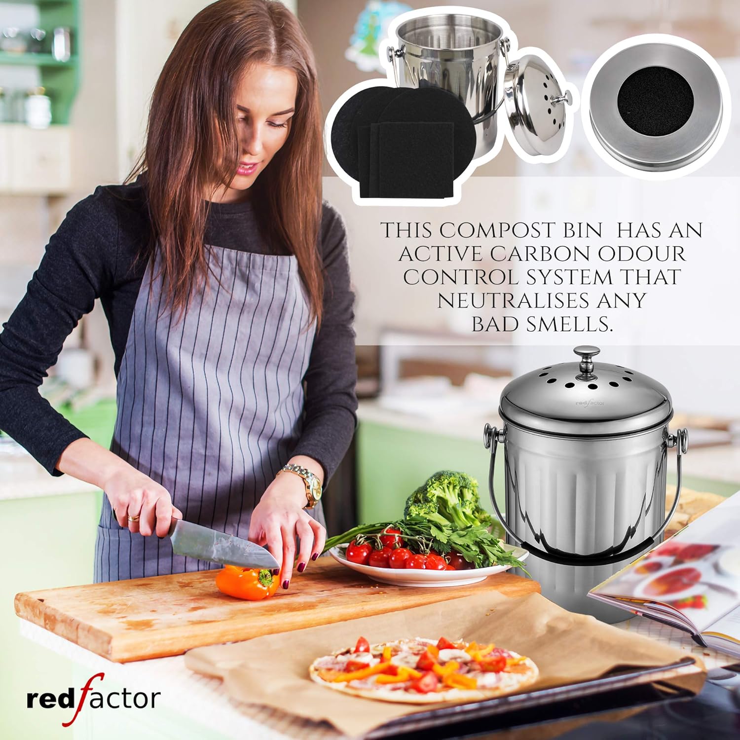 inox brillant 5 litres poubelle compost cuisine red factor premium seau compost inodore en acier inoxydable pour cuisine rangement et organisation dechets et recyclage