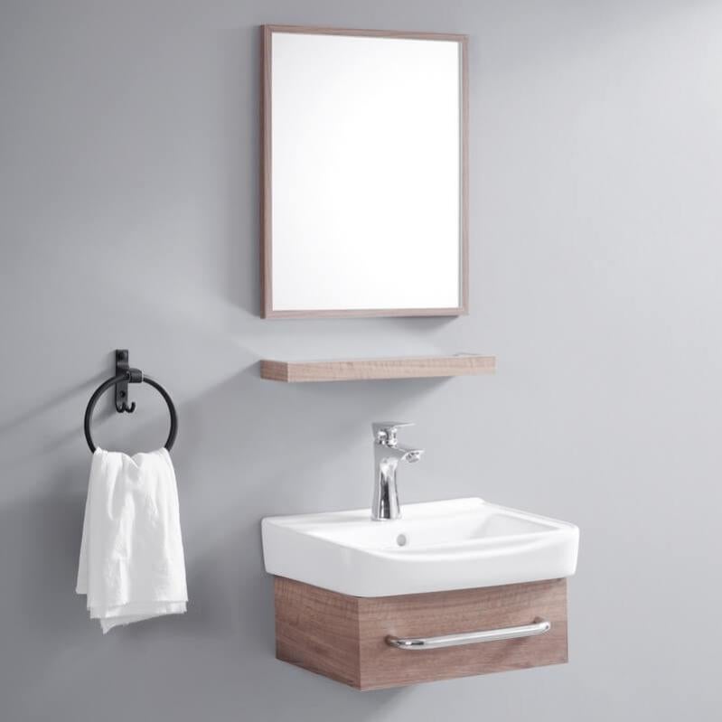 ensemble meuble de salle de bain gain de place bois 44x36 cm id leroy merlin