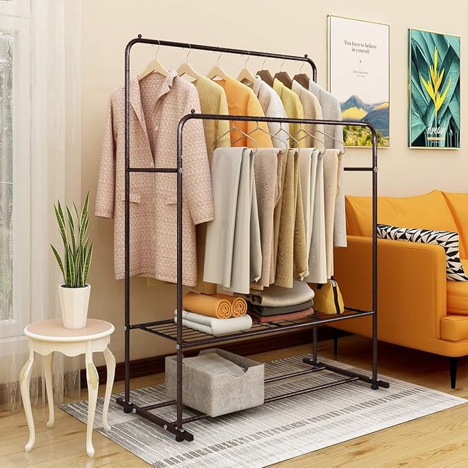 jurmerry portant penderie a vetements cintre autoportant double tringles multifonction pour chambre a coucher bronze amazon fr cuisine maison