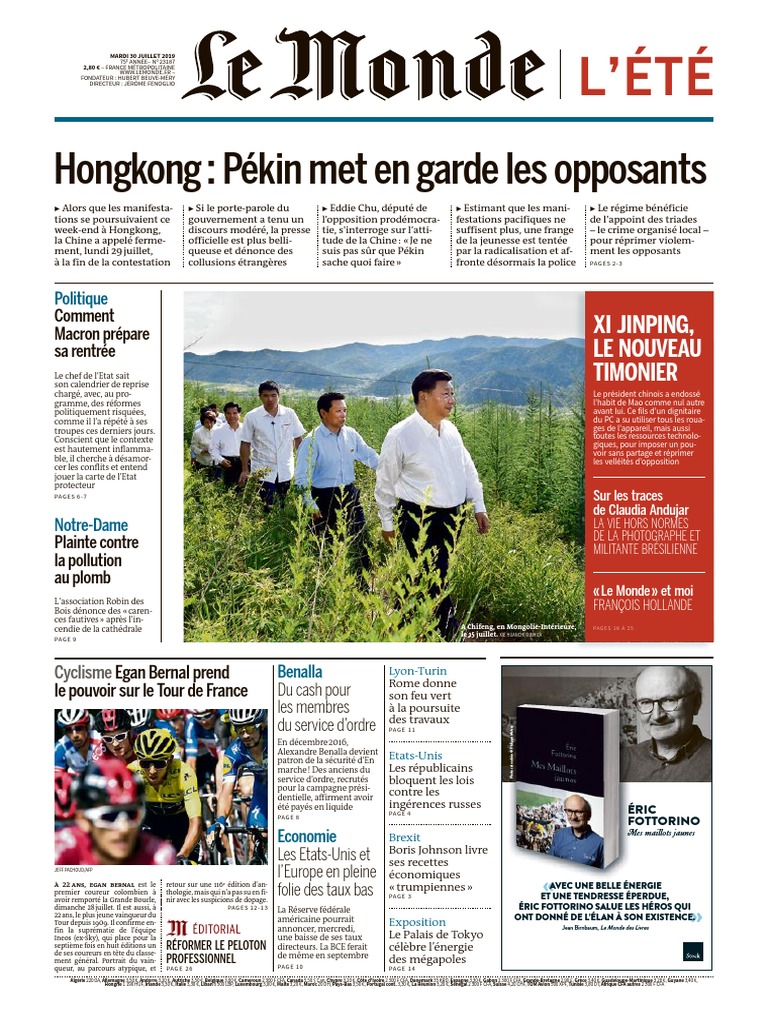 journal le monde et suppl du mardi 30 juillet 2019 hong kong chine
