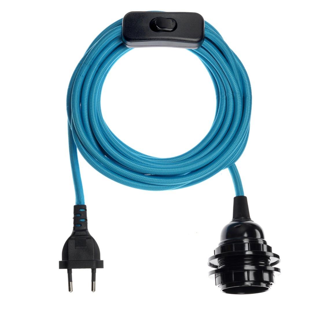 suspension luminaire fil electrique tissu 4 5m e27 avec interrupteur baladeuse deco bleu ciel hoopzi bala leroy merlin