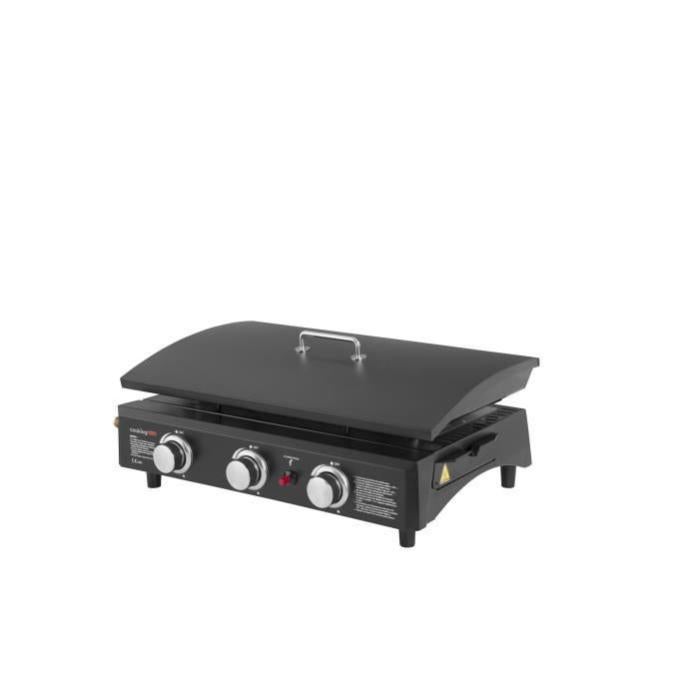 cookingbox plancha a gaz valparaiso 3 feux avec couvercle plaque acier emaille leroy merlin