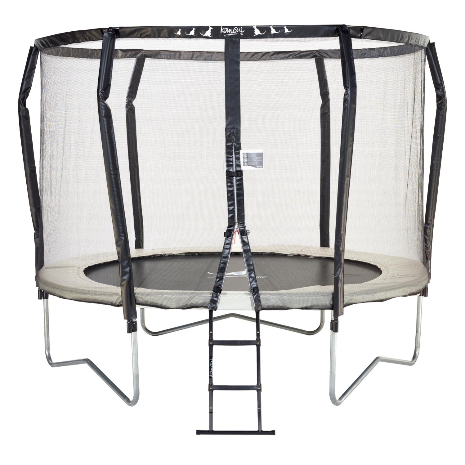 kangui trampoline de jardin 365 cm filet de securite echelle kit d ancrage jumpi taupe vert 360 leroy merlin