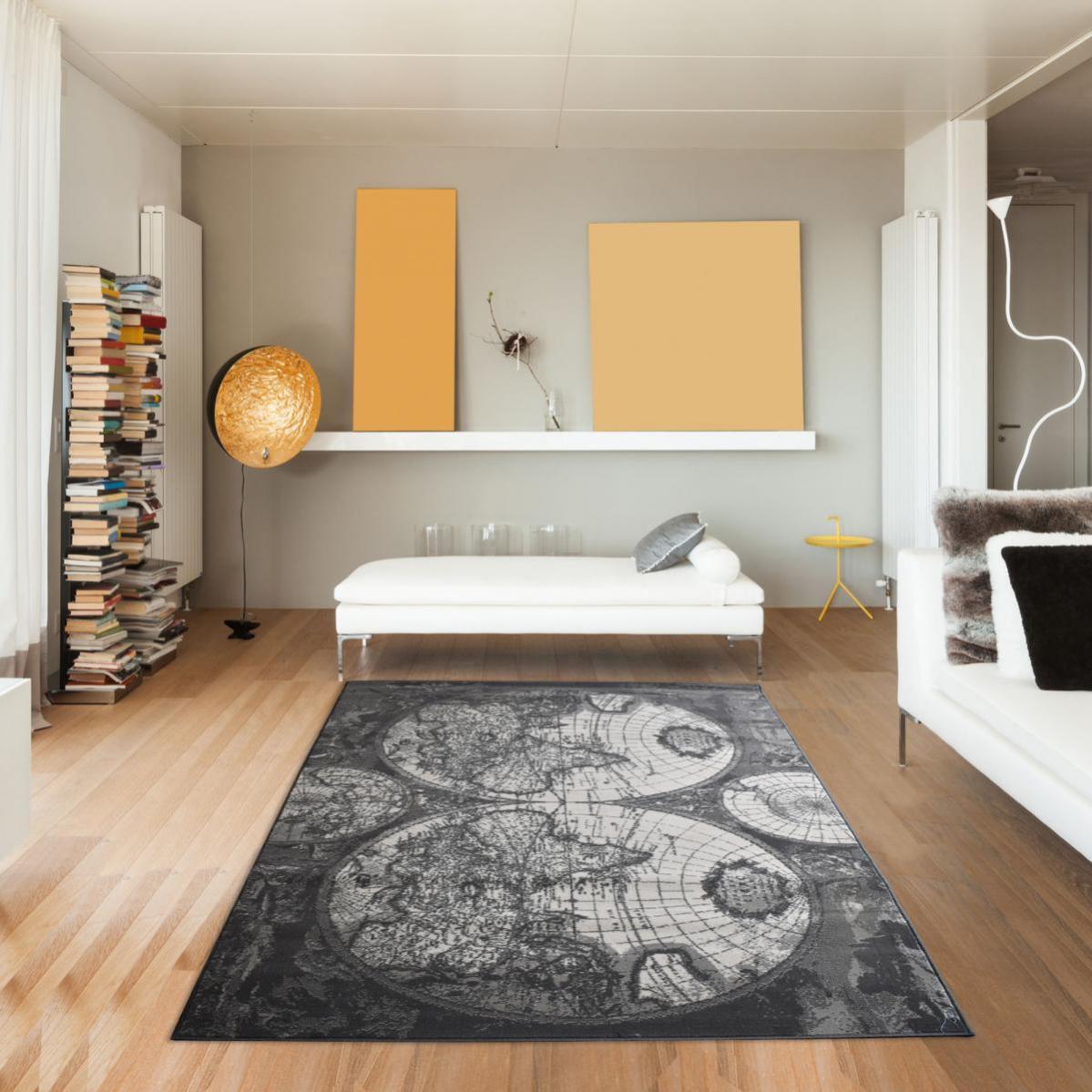 tapis design et moderne 190x280 cm rectangulaire af autour du monde globe gris salle a manger adapte au chauffage par le leroy merlin