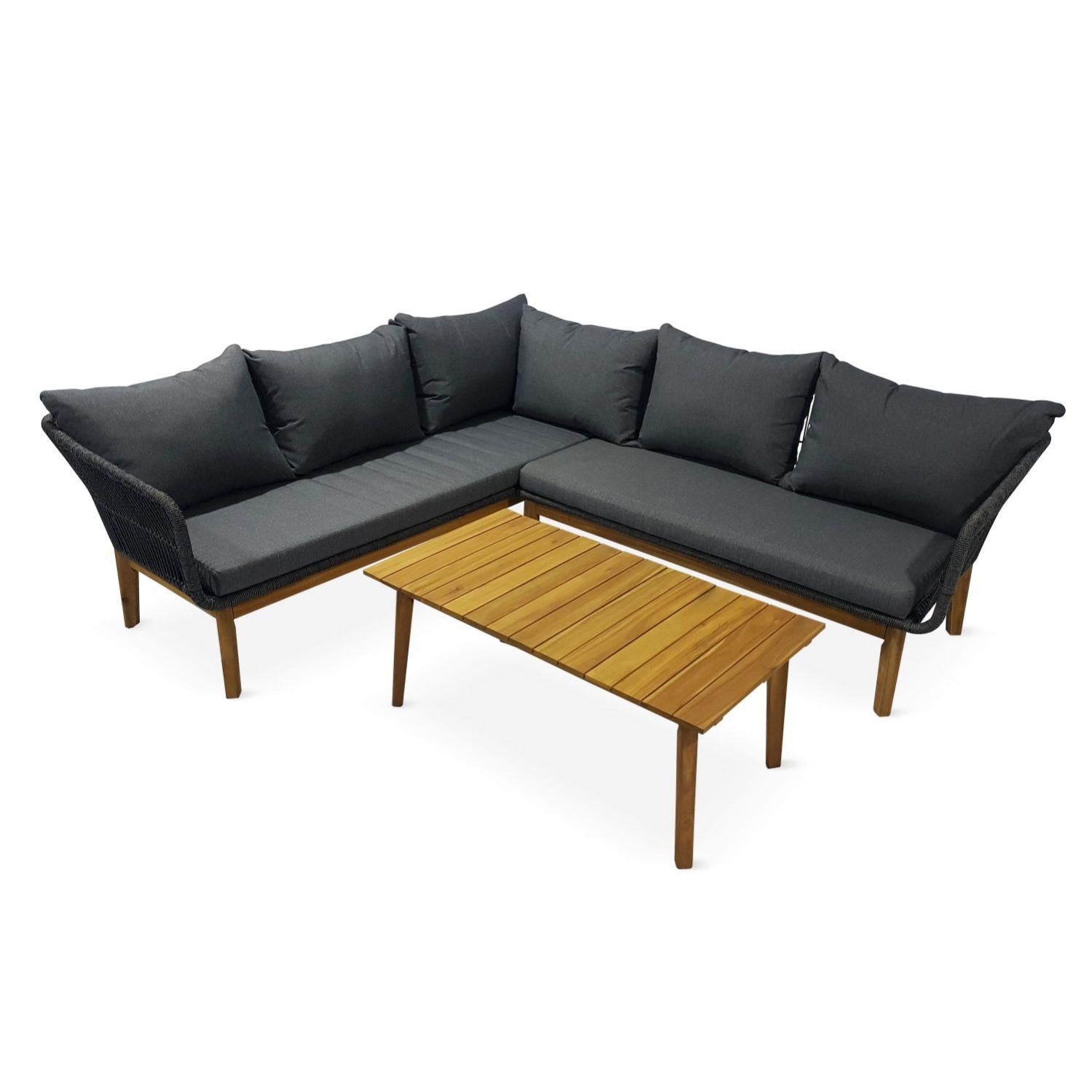 salon de jardin en angle 5 places salvador en corde tressee et bois gris chine coussins gris leroy merlin