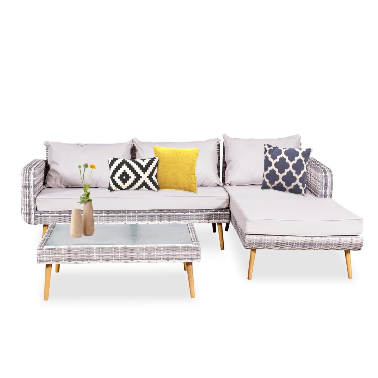 vicky salon de jardin scandinave 4 places en resine tressee grise avec meridienne leroy merlin