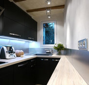 une cuisine en vert et noir dans un appartement contemporain de 65m2 planete deco a homes world appartement contemporain decoration cuisine mobilier noir