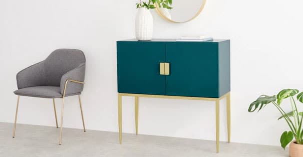 elona commode 4 tiroirs bleu canard et laiton made com