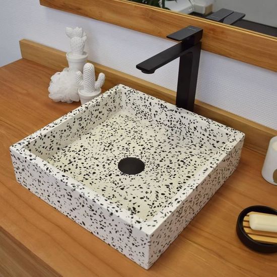 vasque a poser en terrazzo creme arlecchino 40 creme cdiscount bricolage