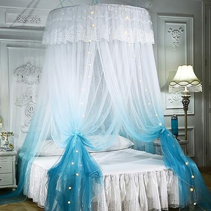 dome moustiquaire avec rideau lumineux led lit a baldaquin dentelle ronde tente literie amazon fr sports et loisirs