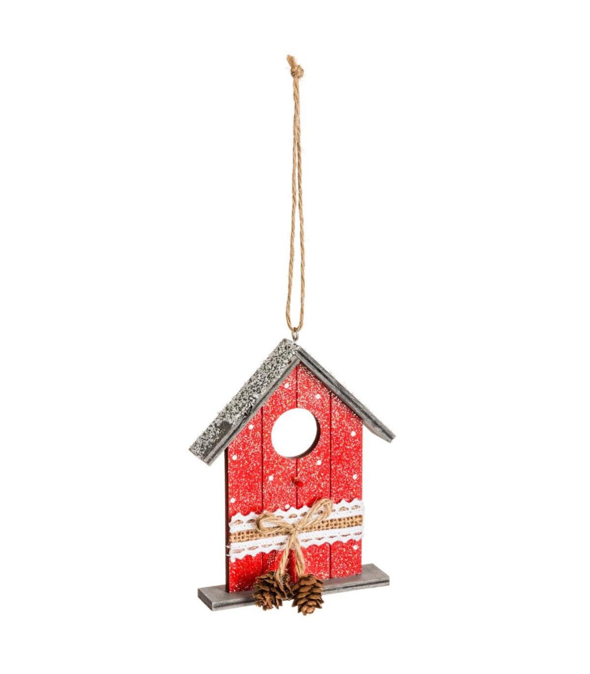sujet de noel a suspendre maison a pois avec pommes de pin leroy merlin