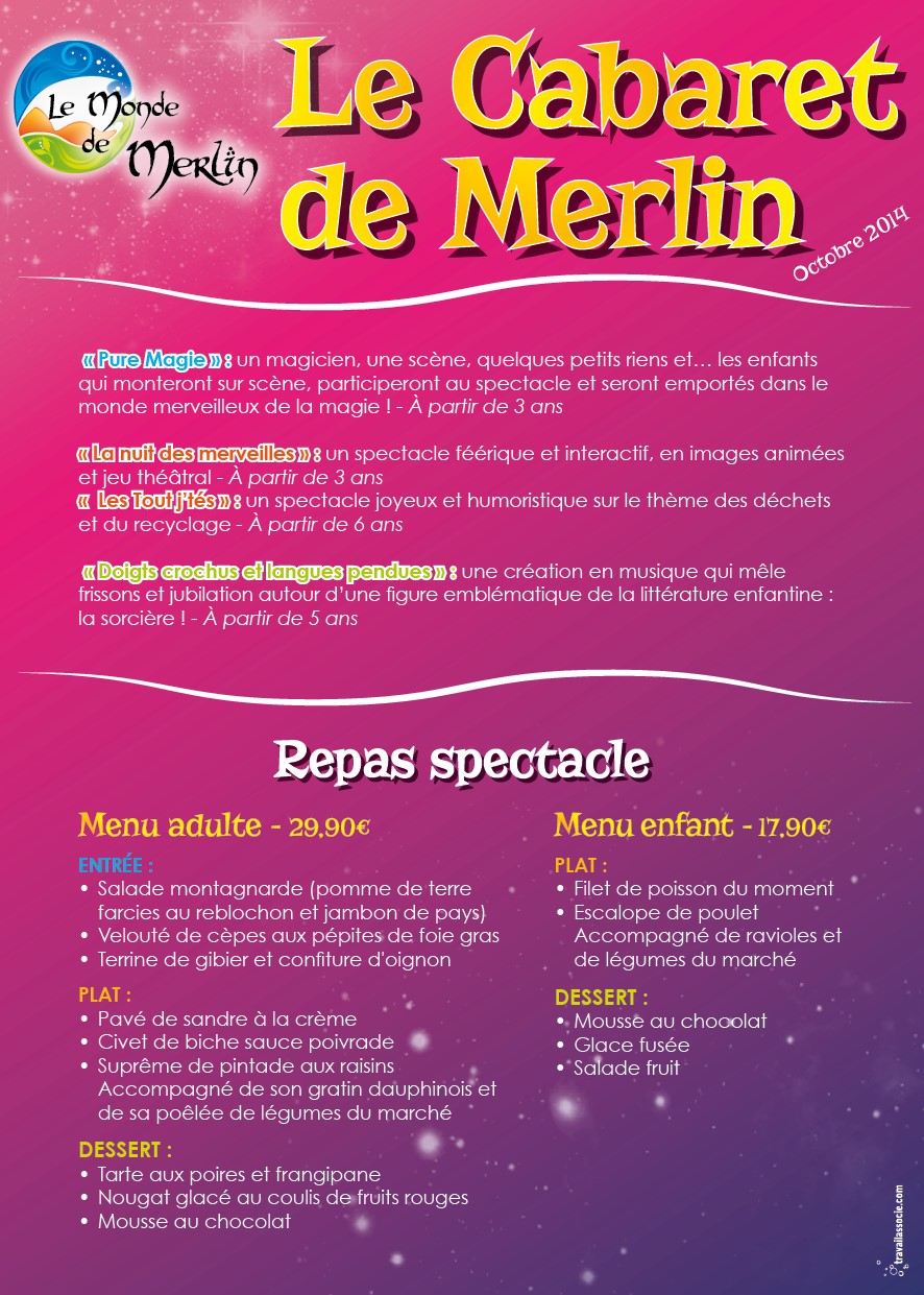 menu cabaret le monde de merlin