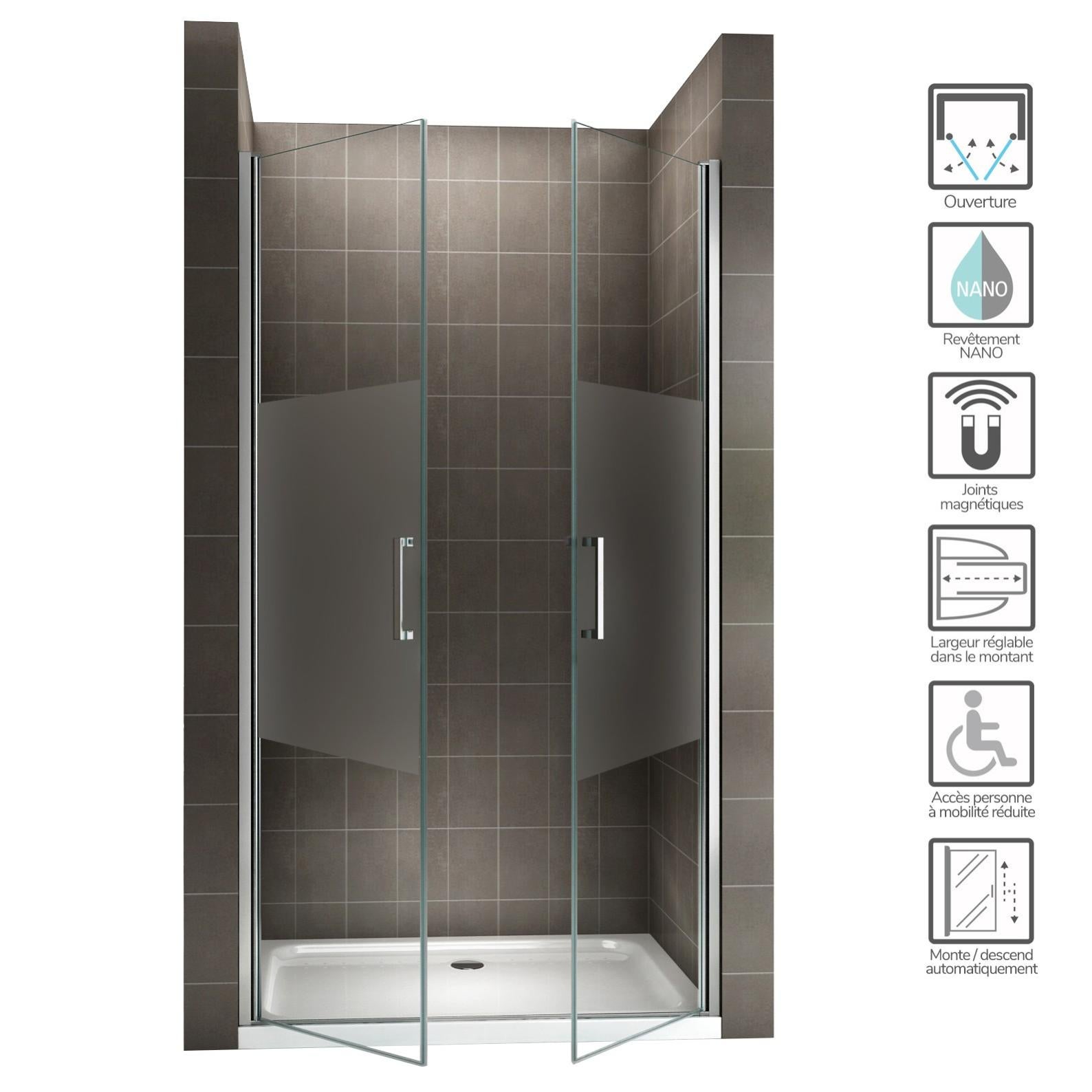 kaya porte de douche h 195 largeur reglable 92 a 95 cm verre semi opaque leroy merlin