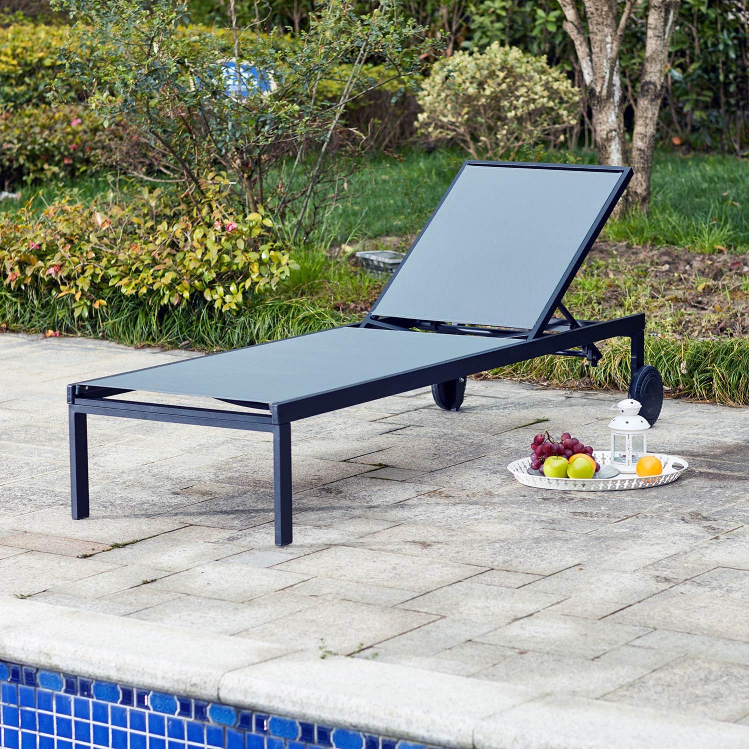 cuba gris bain de soleil inclinable en aluminium et textilene avec roulettes leroy merlin
