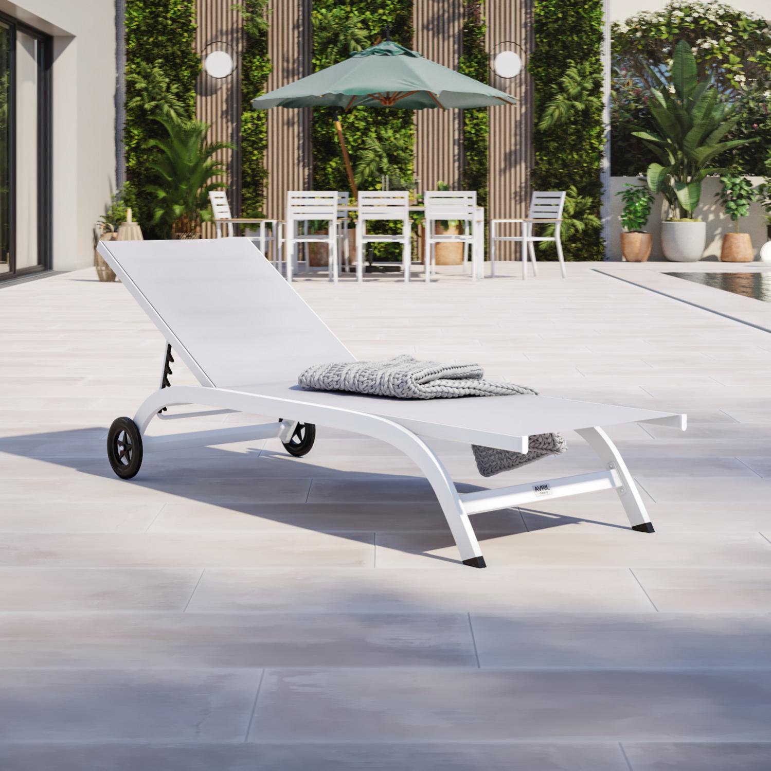 bain de soleil transat de jardin inclinable 5 positions aluminium avec roulettes blanc gris pol leroy merlin
