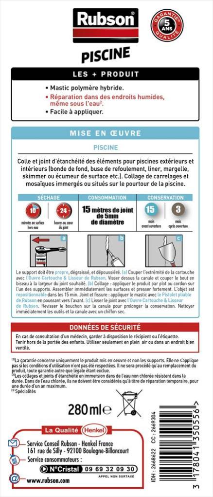mastic d etancheite rubson piscine extreme 280 ml translucide leroy merlin