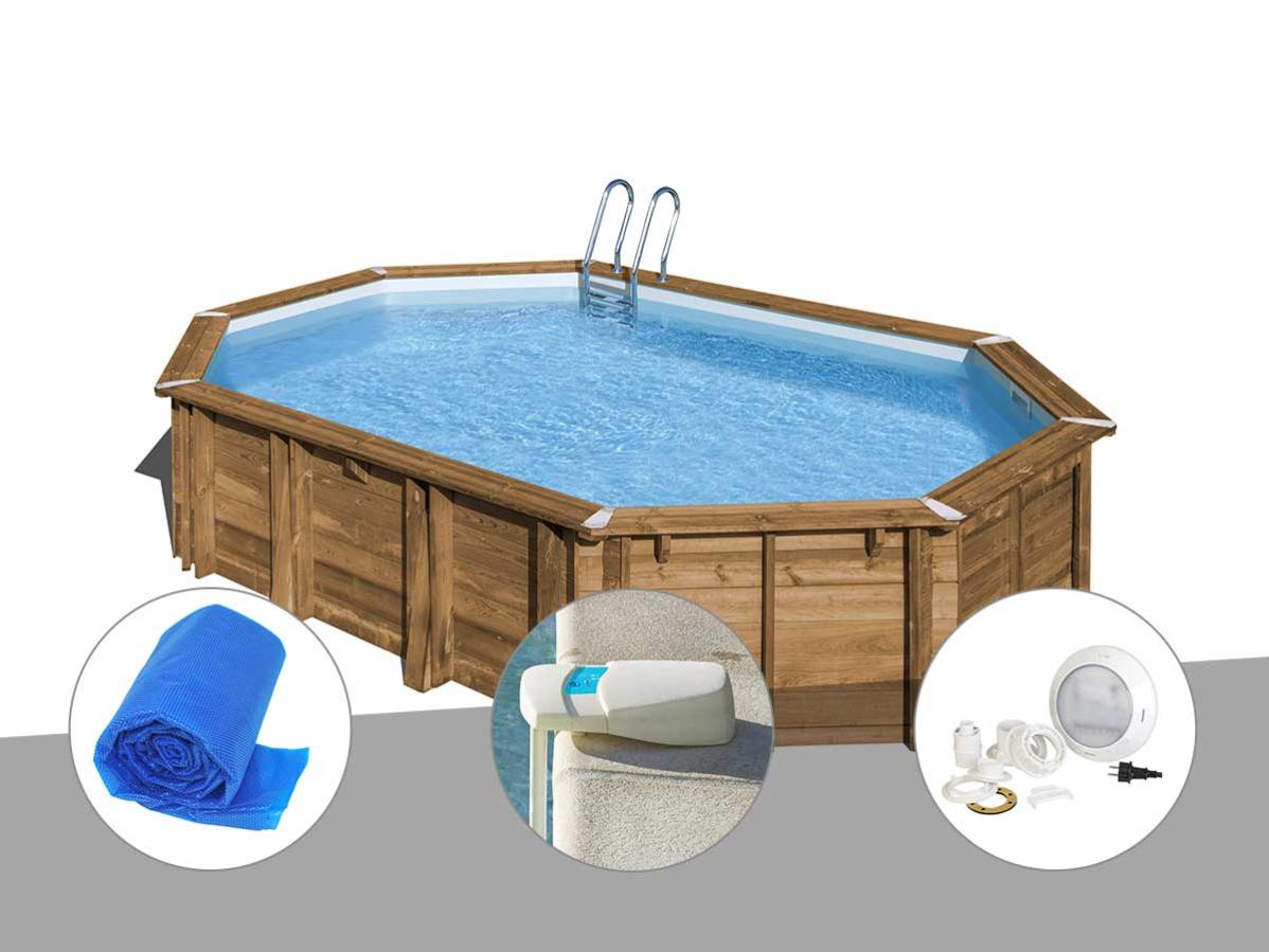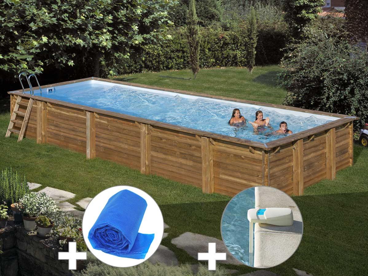 kit piscine bois sunbay avocado 6 56 x 4 56 x 1 27 m bache a bulles alarme spot leroy merlin