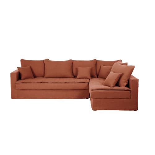 canape d angle gauche convertible 5 places en lin terracotta celestin maisons du monde
