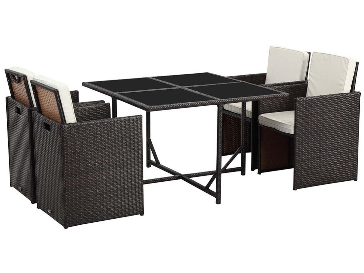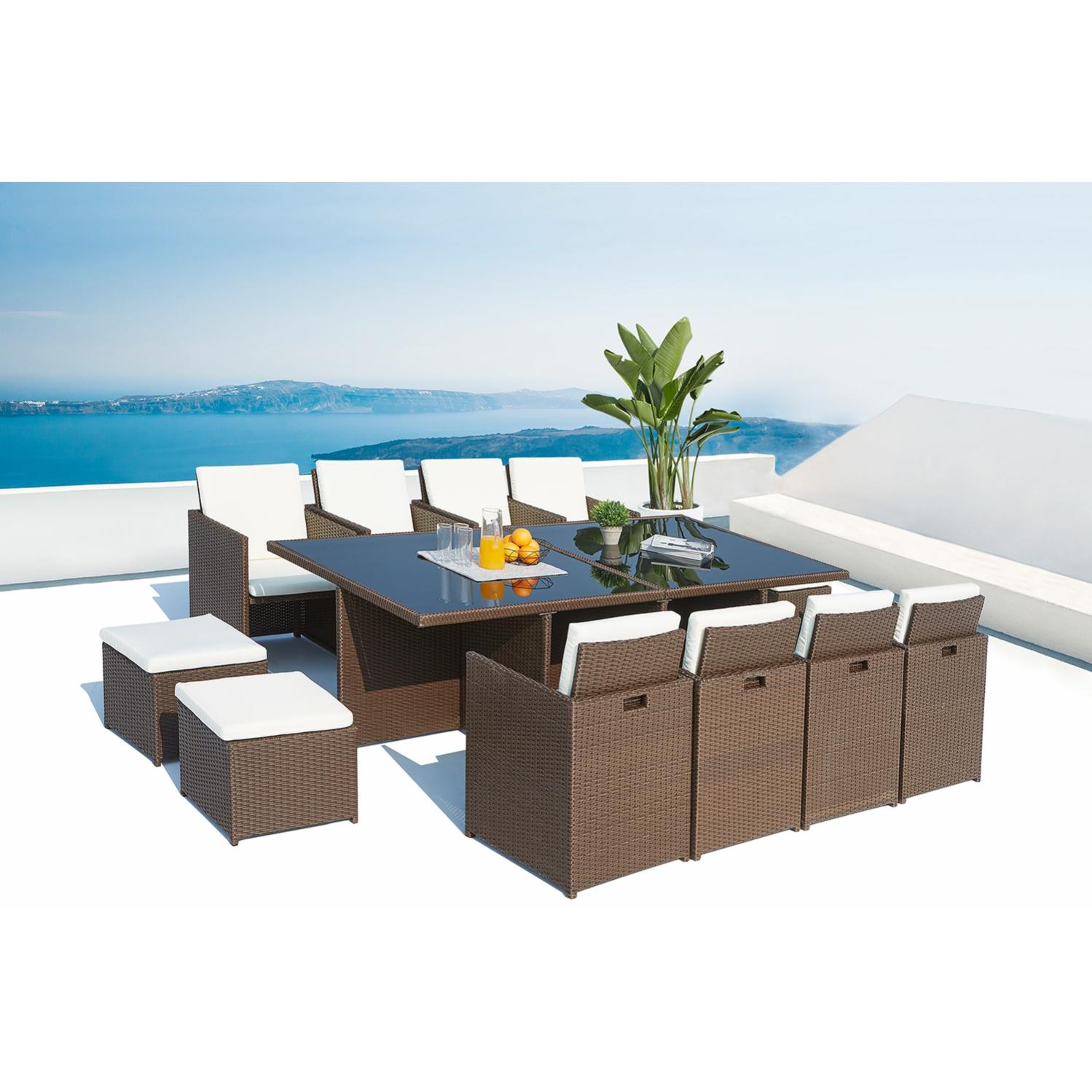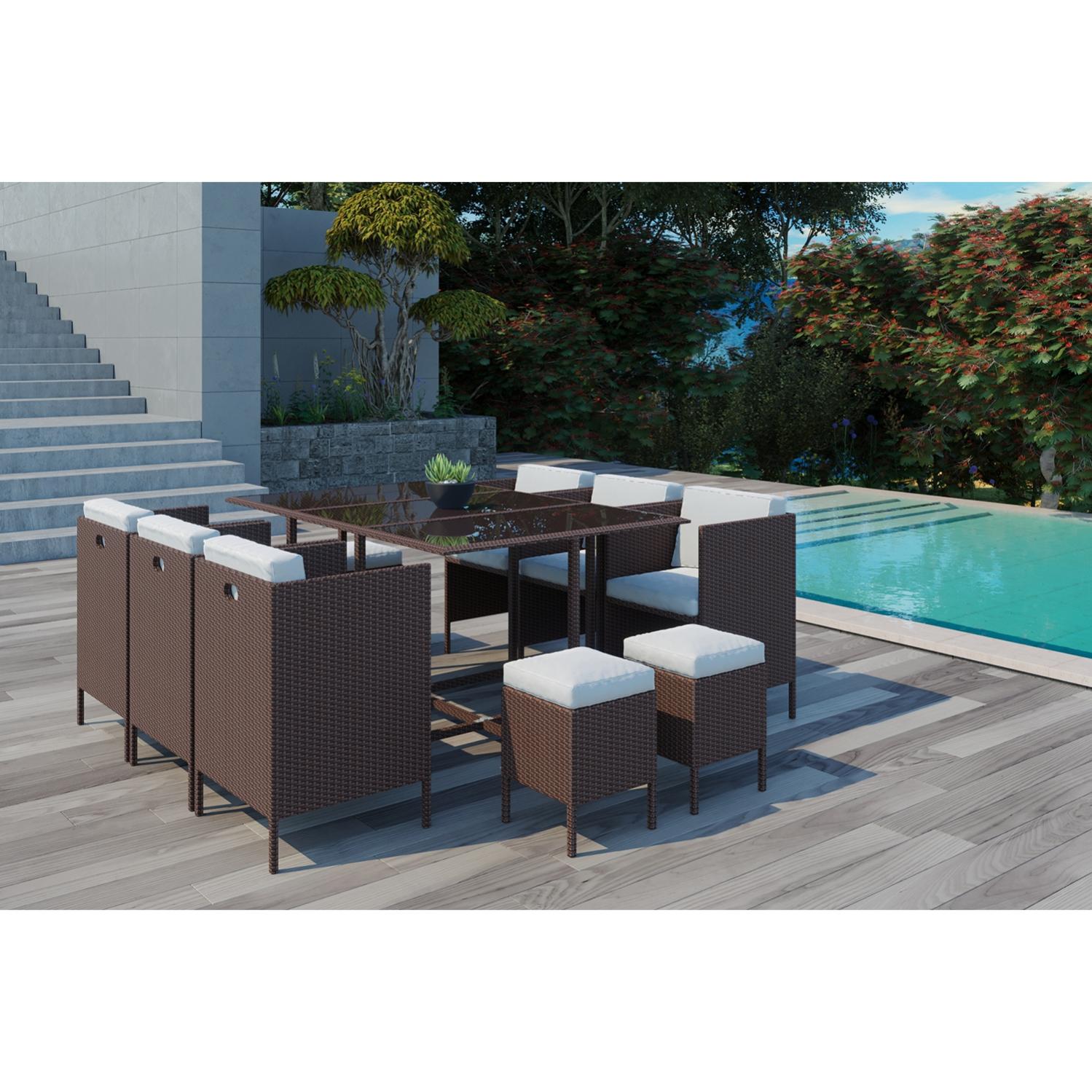 monaco 12 salon de jardin encastrable 12 places en resine tressee marron blanc leroy merlin