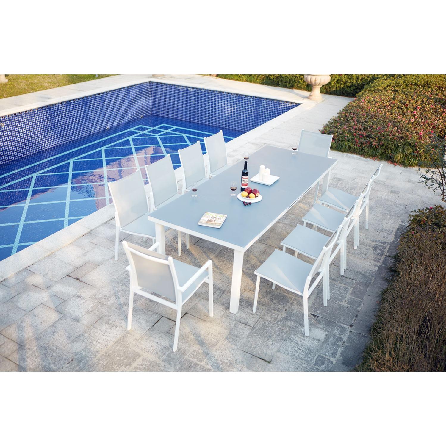 moniga 10 table de jardin extensible 10 personnes avec 2 fauteuils et 8 chaises en aluminium leroy merlin