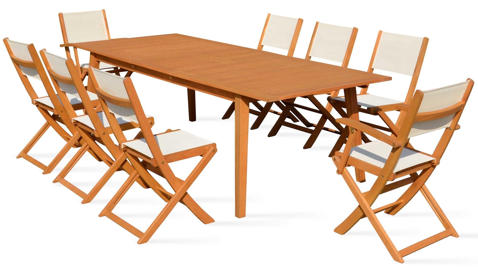 table de jardin en bois extensible 2 fauteuils et 6 chaises martigues leroy merlin