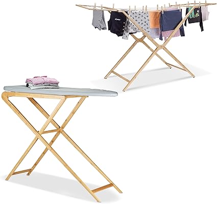 set de 2 pieces budget planche a repasser bois pliable bambou housse de table a repasser coton etendoir sechoir a linge naturel amazon fr cuisine maison
