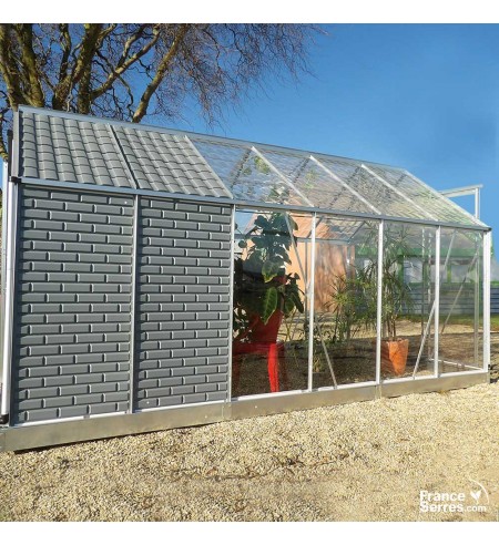 serre adossee robinsons 1619mm de large avec revetement en poudre sur muret