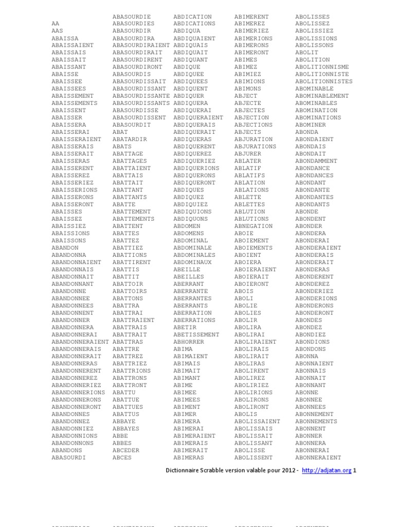 dictionnaire complet scrabble nouveaux mots 2012 inclus