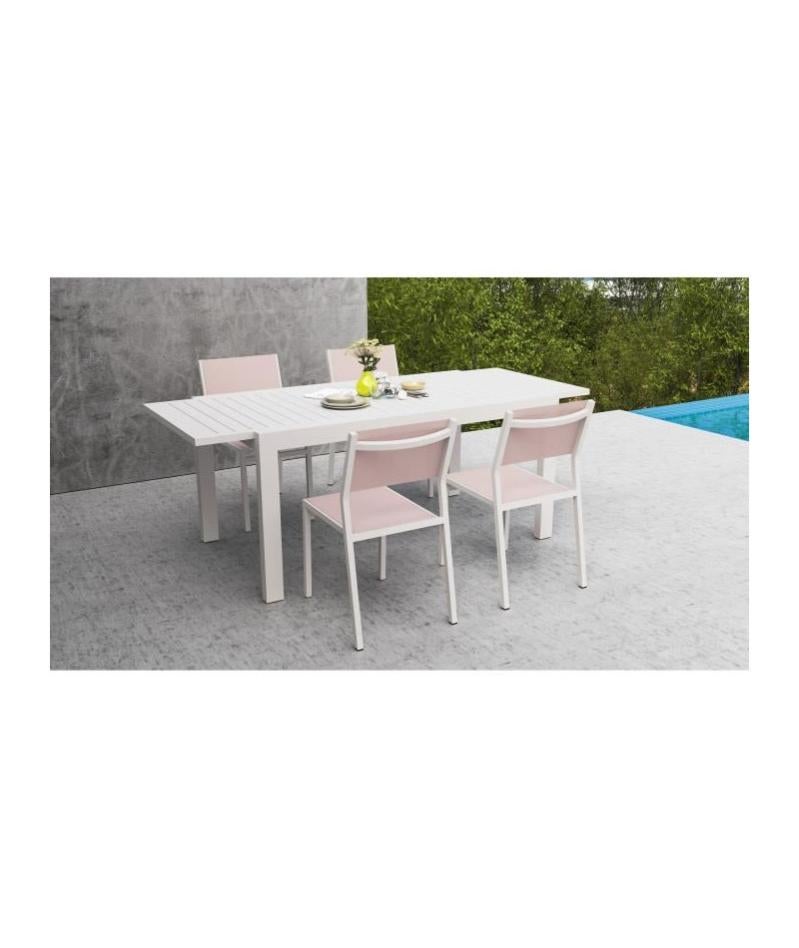 extenso ensemble repas de jardin table extension automatique en alu 4 chaises alu et toile enduite blanc leroy merlin