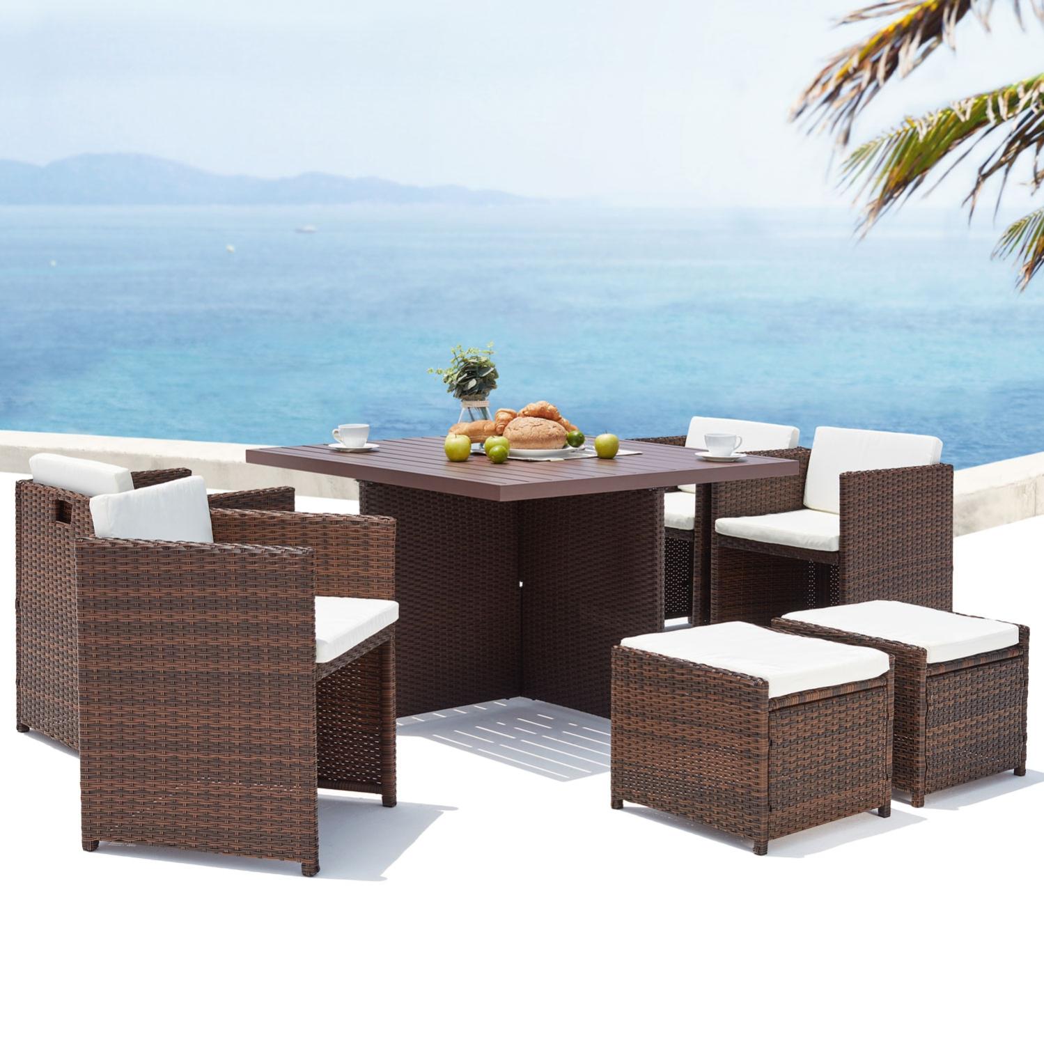 sunset 8 salon de jardin encastrable 8 places en resine tressee et aluminium marron blanc leroy merlin