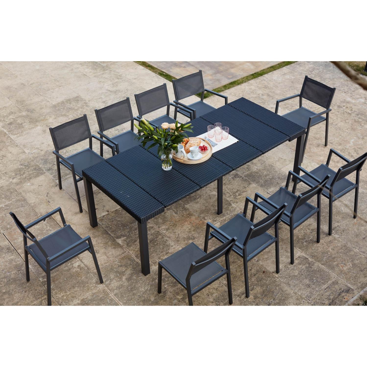 sunset 10 salon de jardin encastrable 10 places en resine tressee et aluminium noir gris leroy merlin