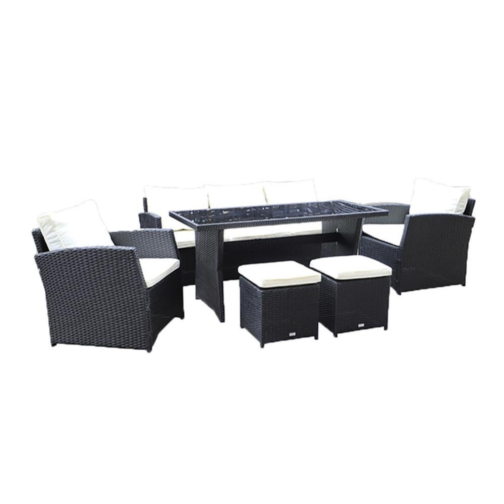 munga 10 places ensemble encastrable salon table de jardin resine tressee noir ecru leroy merlin