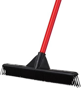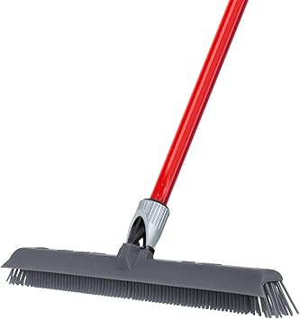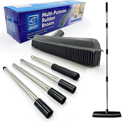balai brosse en caoutchouc pour tapis et sols interieurs balai de moquette avec poils silicone retire les poils de chats et chiens des tapis avec raclette brosse longue poignee telescopique amazon fr