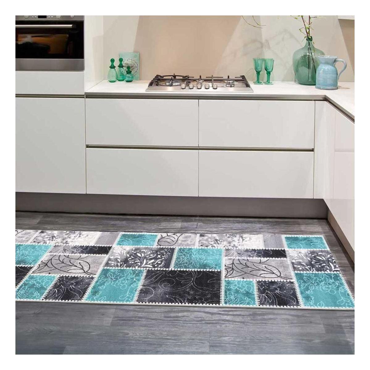 tapis de cuisine 67x180 cm rectangulaire vintage bleu cuisine adapte au chauffage par le sol leroy merlin